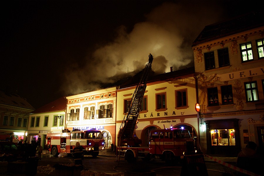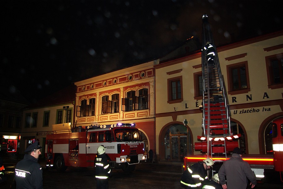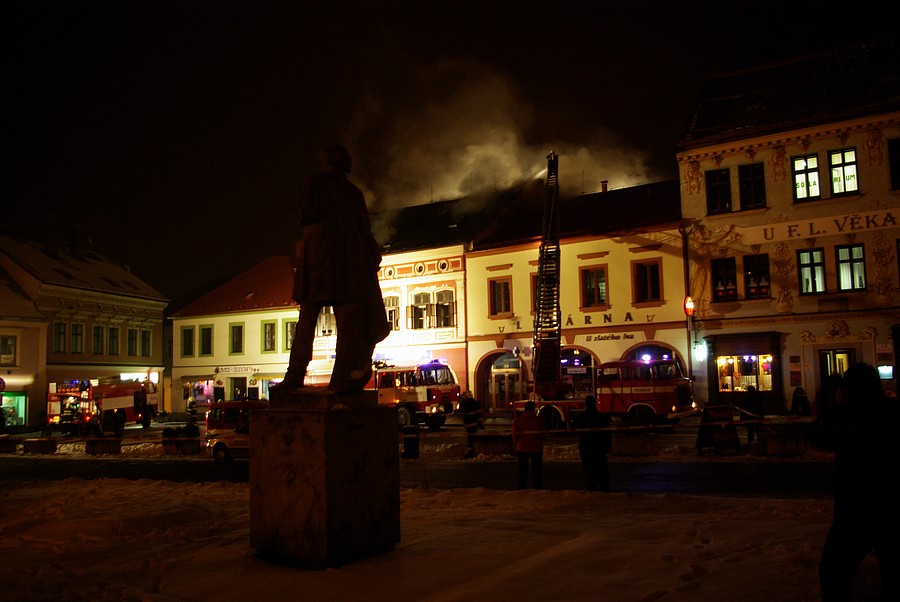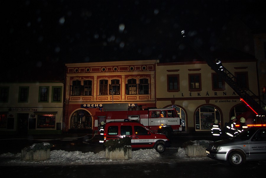 Požár v domě čp. 19 na nám. F. L. Věka (02.02.2011)