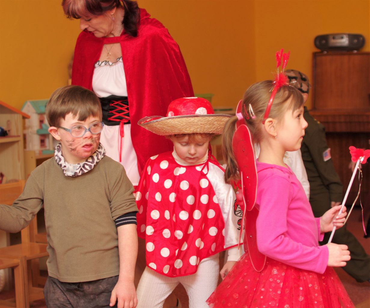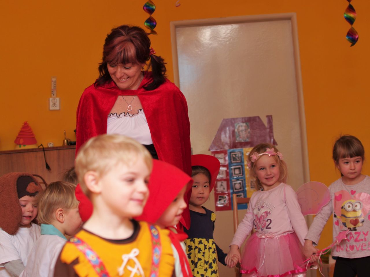 První únorový týden v mateřské škole Za univerzitou patřil karnevalovým maskám, do nichž se oblékly děti, učitelky i personál. Ve všech třídách se zpívalo, tancovalo a soutěžilo.