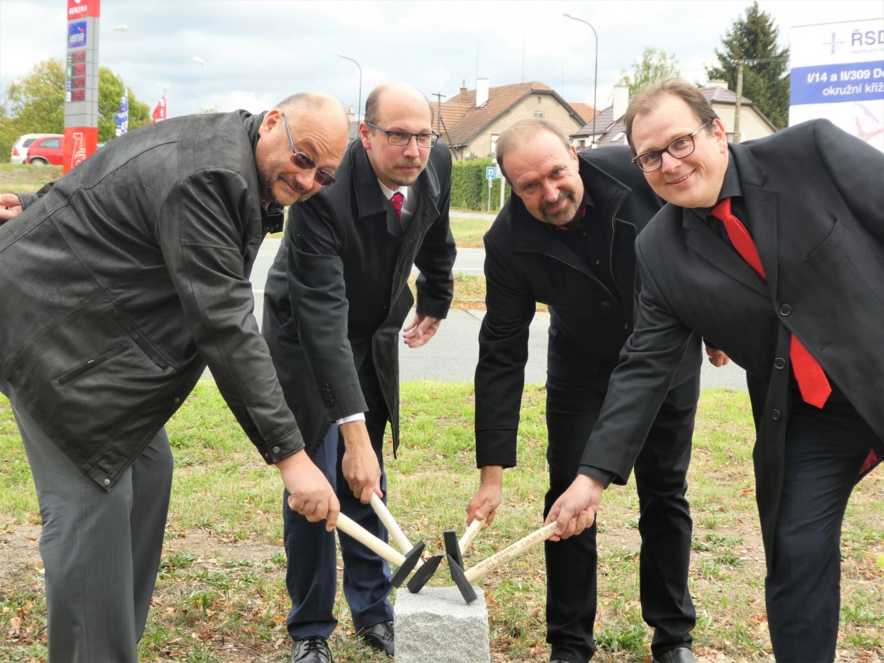 Slavnostní zahájení výstavby okružní křižovatky - poklepání na základní kámen