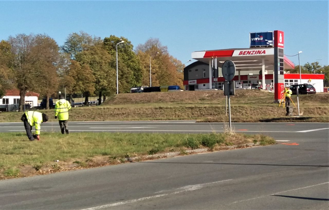 Poklepání na základní kámen zahájilo výstavbu okružní křižovatky v Dobrušce u benzinky (silnice I/14 a II/309). Slavnostního aktu se ujali (zprava) generální ředitel Ředitelství silnic a dálnic Jan Kroupa, ředitel královéhradecké správy ŘSD Marek Novotný, hejtman Královéhradeckého kraje Jiří Štěpán a starosta Dobrušky Petr Lžíčař. Momentálně probíhá výběrové řízení na zhotovitele stavby, která bude stát téměř 22 milionů korun. Ředitelství silnic a dálnic ČR uhradí necelých 14 milionů a město Dobruška za výstavbu přilehlých chodníků, osvětlení a parkoviště 8 milionů.