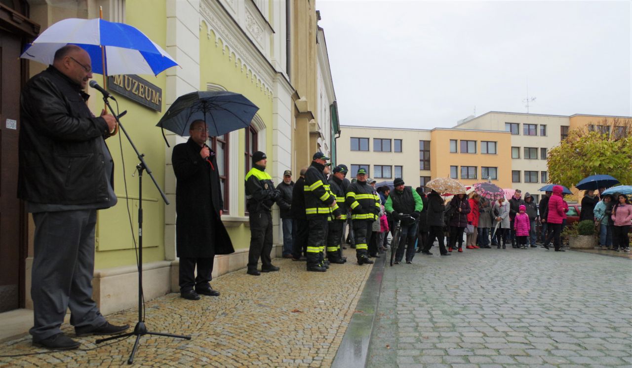 Velká oslava desátého výročí vzniku samostatné Československé republiky začínala před budovou pošty, v níž dnes sídlí vlastivědné muzeum. Právě před ní, zhruba v místech nynější fontánky, rostla lípa svobody. U lípy se pokládaly věnce a pěvecký sbor Dobroš pěl píseň Kristus - Oráč od Karla Dostála-Lutinova.