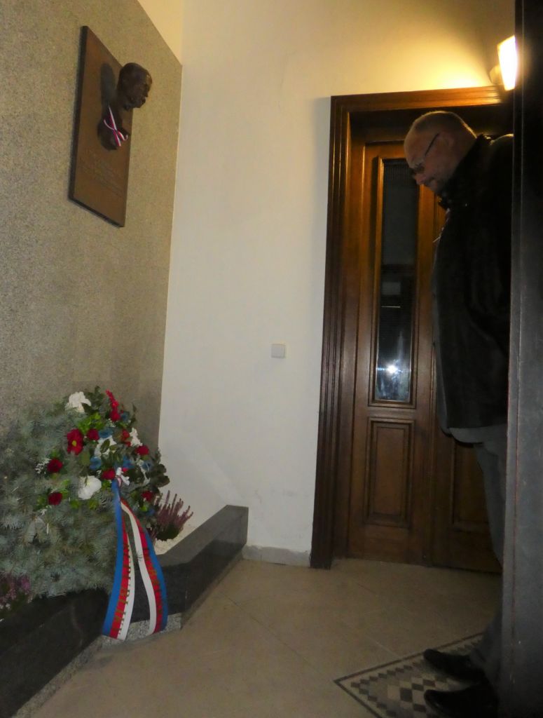 Po slavnosti na Šubertově náměstí starosta Petr Lžíčař položil květinový věnec k pamětní desce Tomáše Garrigua Masaryka v bývalém hotelu Rýdl, kde první československý prezident pobýval v roce 1904.