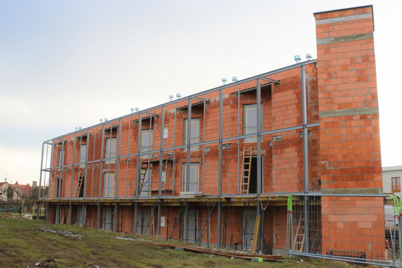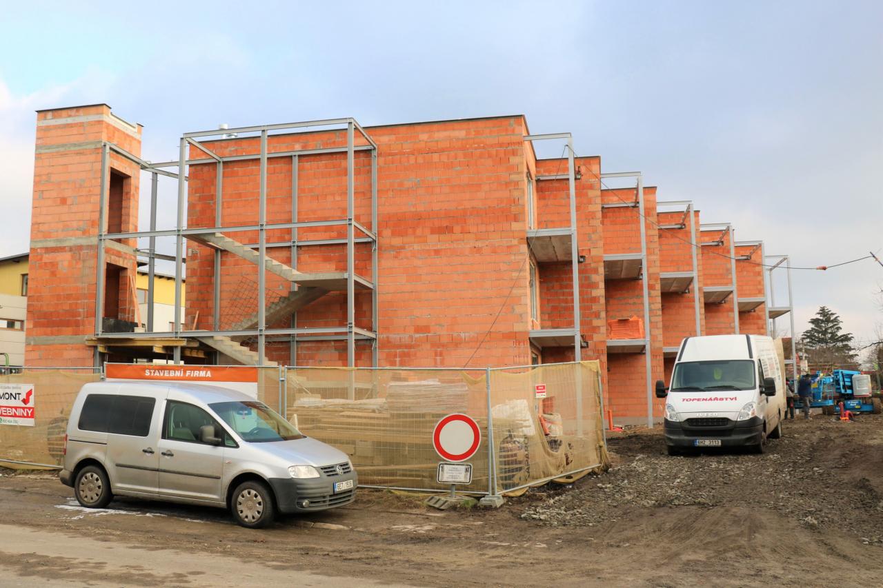 Na křižovatce ulic Na Příčnici a Františka Kupka naproti základní škole pokračuje výstavba bytové domu se 17 malometrážními byty.