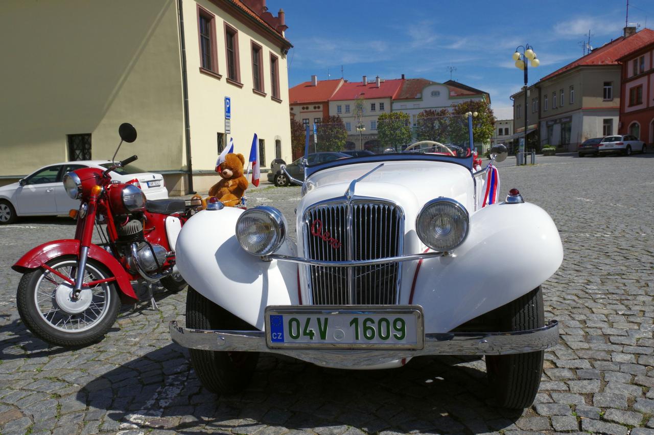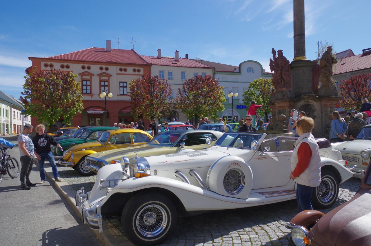 Podorlický Veterán Car Club Dobruška uspořádal tradiční prvomájovou jízdu veteránů. Jedna ze zastávek byla na náměstí na F. L. Věka, kde si milovníci automobilů a motocyklů přišli na své.