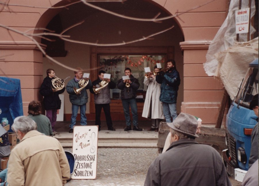 Vystoupení Dobrušského žesťového sdružení na vánočním trhu (prosinec 2000)