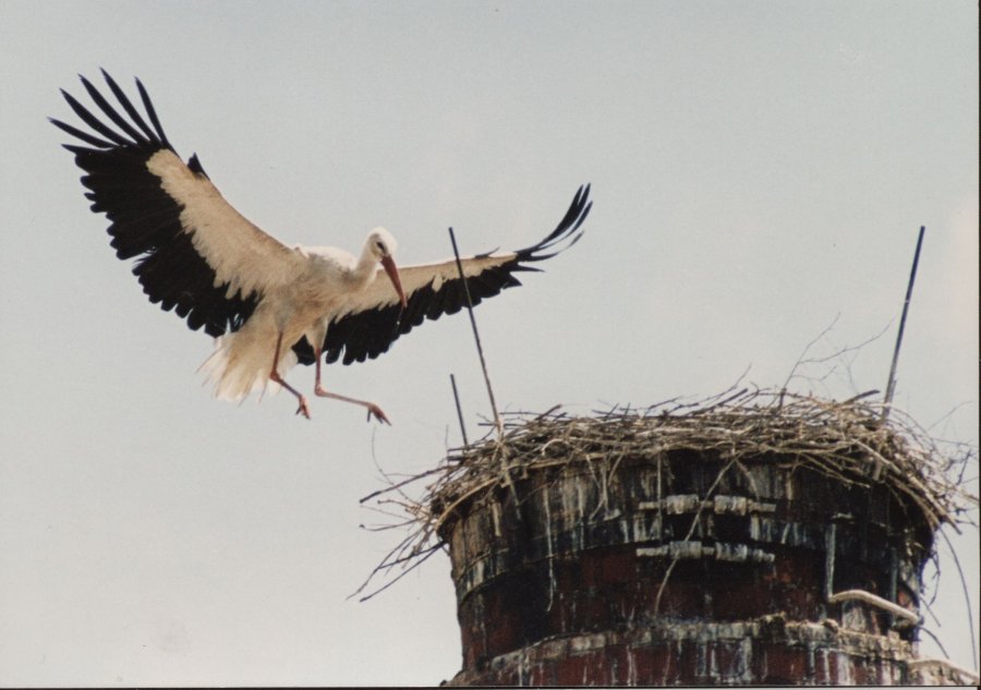 Čápi na komíně pivovaru (červenec 2001)
