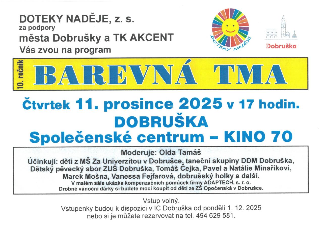 Vstup volný. Vstupenky budou k dispozici v IC Dobruška od pondělí 1.12.2025.